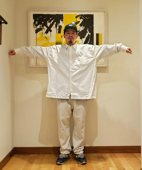 特徴としてはたっぷりな身幅とアームホールでオーバーサイズ。