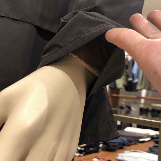 シワになっても、手でなでつけるとあら不思議、元どおりになるテクニカルな素材なんです。(実際にできないところが悔やまれますが…)