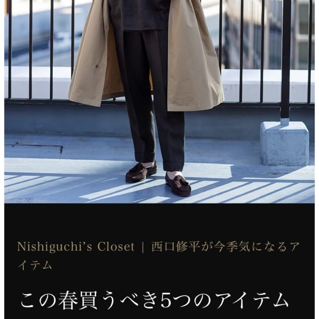 コートから、パンツまで、ディレクター西口の厳選アイテムを紹介しております。