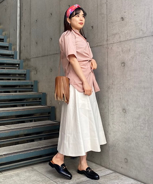 フレアスカートと合わせるとモードな着こなしが楽しめますよ。