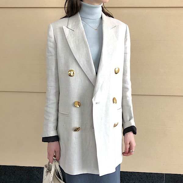 デニムと合わせてラフに着こなすのも素敵ですよ。