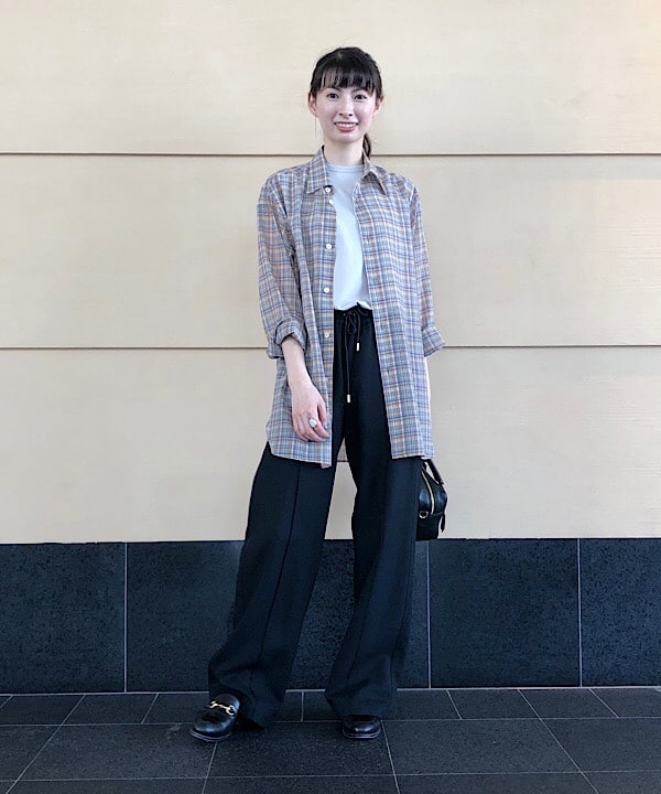 動くと揺れるシルエットが女性らしく、さらっと一枚で着やすいですよ。