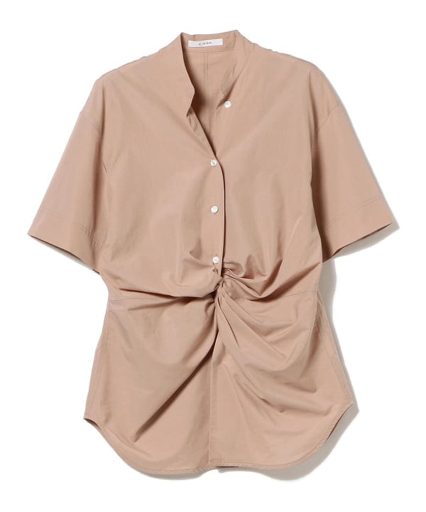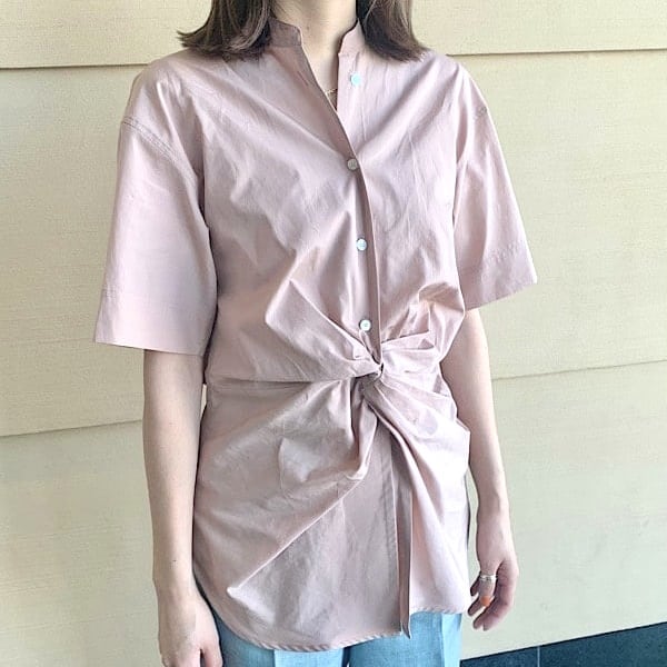 遊び心のあるウエストのシェイプが特徴的な半袖シャツ。
