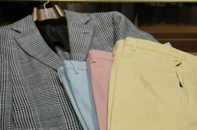 明るいジャケットで、春らしく華やかに仕上げるのも良いですね。
