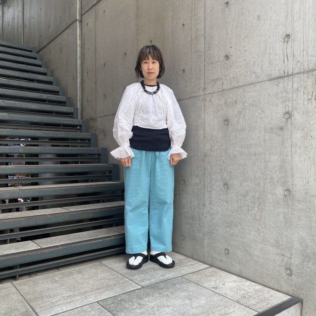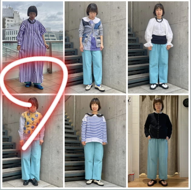 こんな感じで着丈の短いトップスと重ね着やネックレスを用いて視線を上にあげると良いですよ。