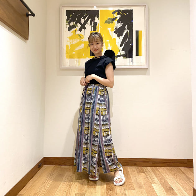 ウエストにブラックのベルトもアクセント効いてますね〜〜!