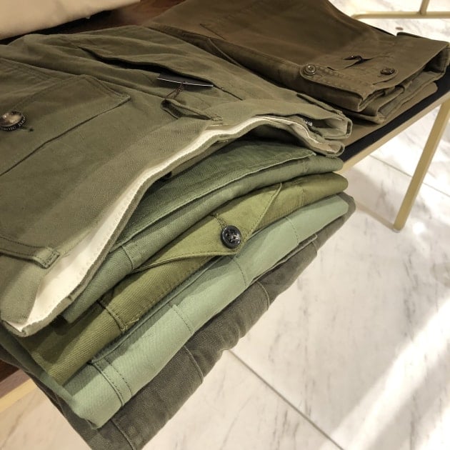 今シーズンは、オリーブ色のパンツ、ミリタリーテイストのパンツが多くございますので、