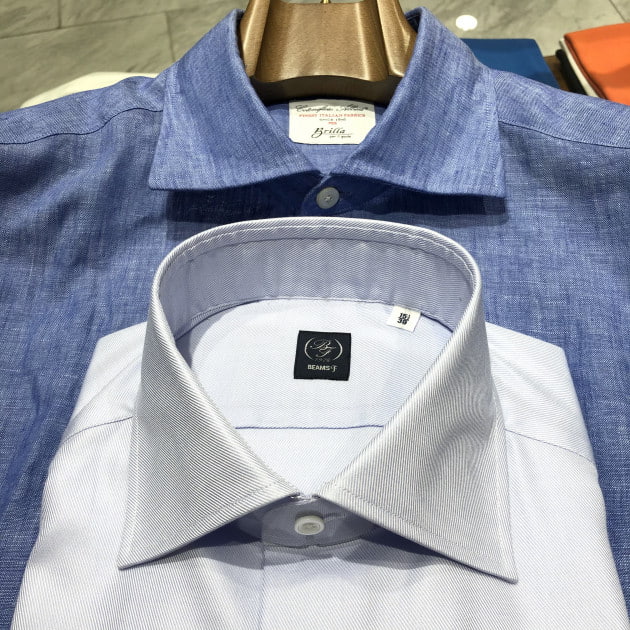 下はワイドカラーの襟型のワイシャツです。