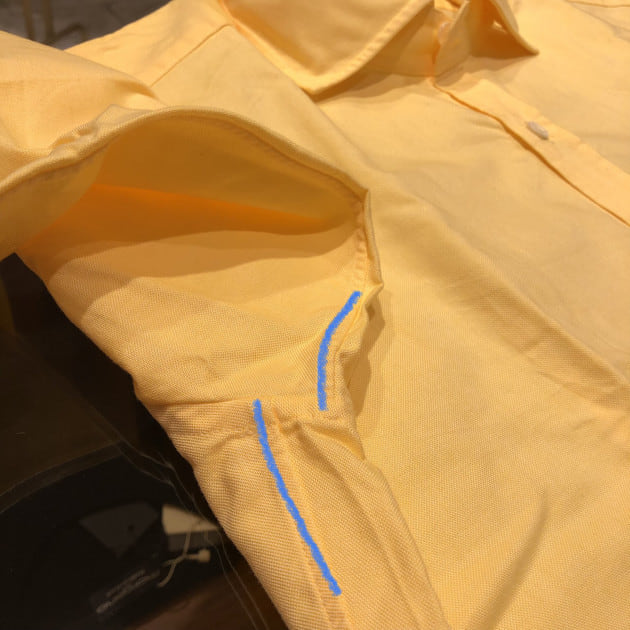 ボディと袖を一気に縫製する量産型と比べ