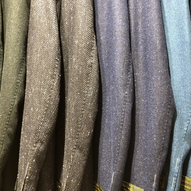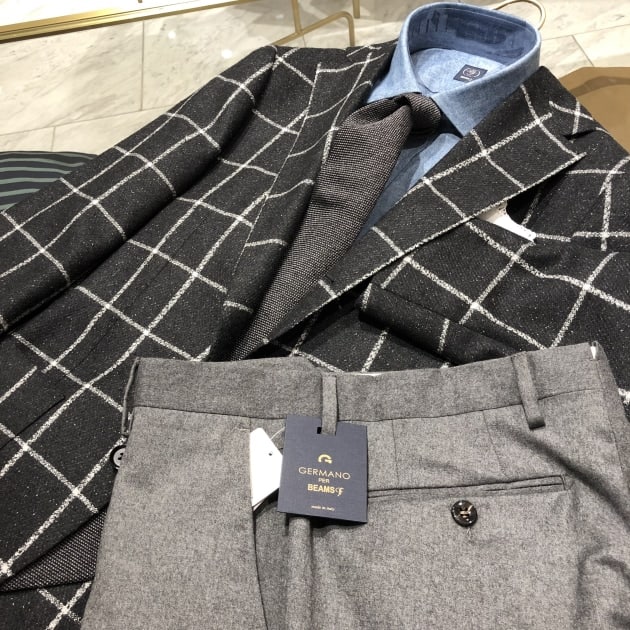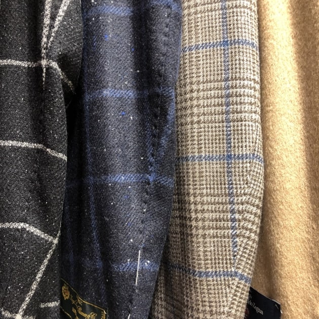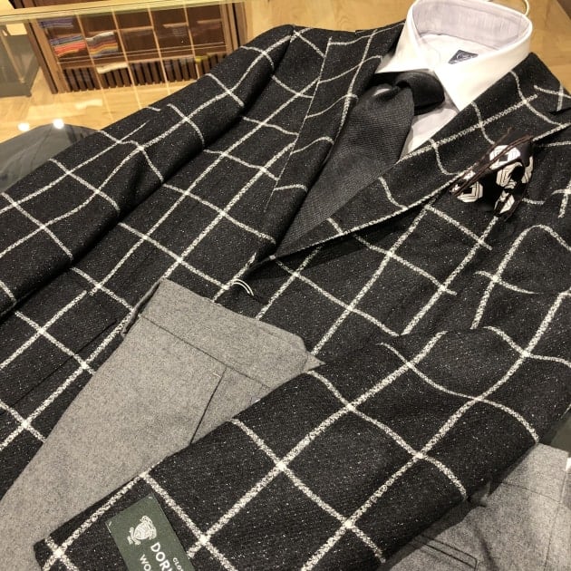 「DORMEUIL」生地では珍しいくっきりとした柄物ですね。