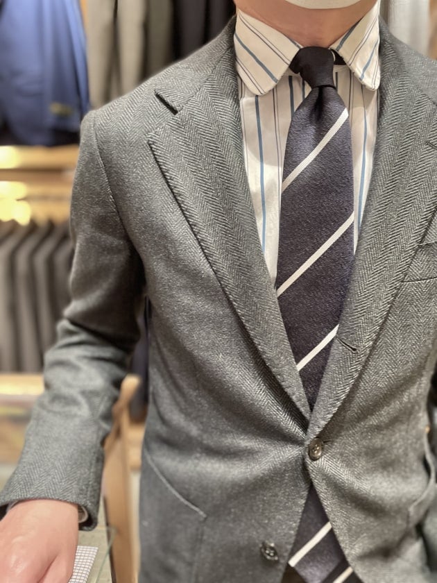 タイは2022春夏コレクションですが、秋冬ジャケットとももちろんコーディネートしていただけます。