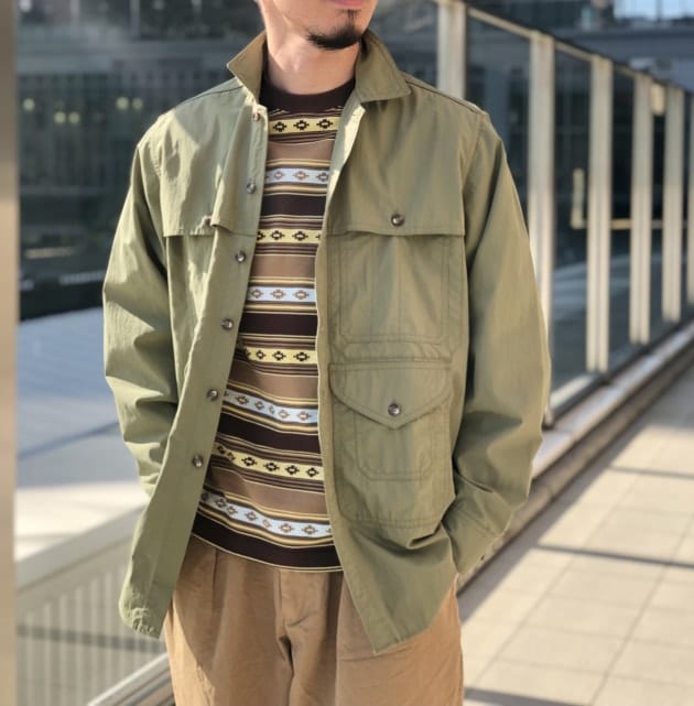 フロントのポケットディテールからお分かり頂けるかと思いますがこちらはクルーザージャケットをデザインソースにしており、シャツ感覚で着用出来る様にアップデート。