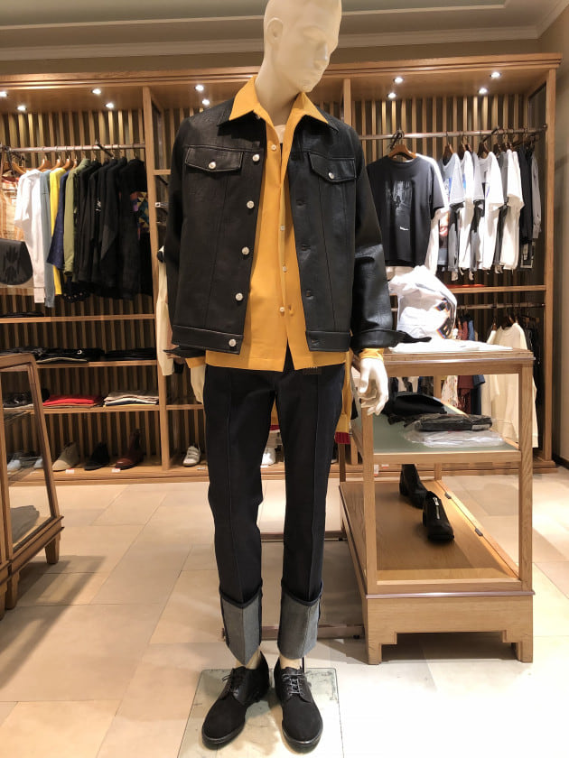 こちらはマネキンに着せているコーディネートから、マスタード気味に"スモーキー"なイエローカラー。