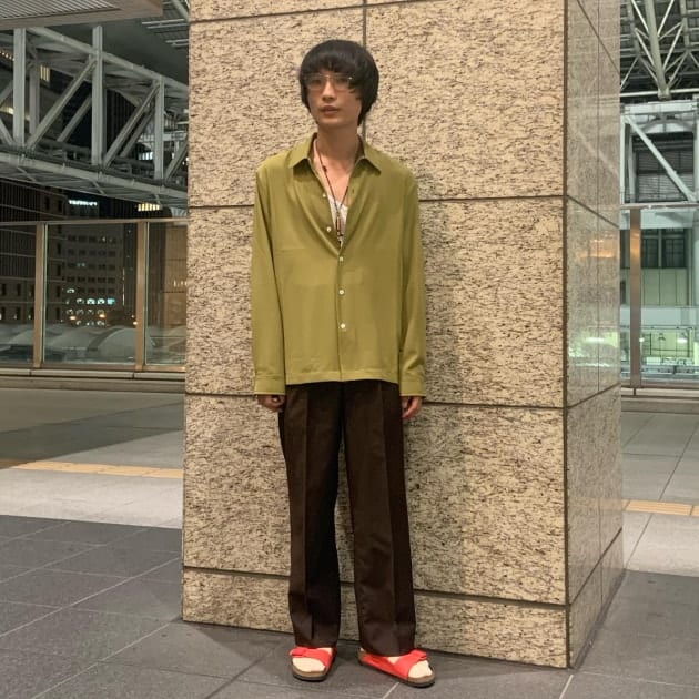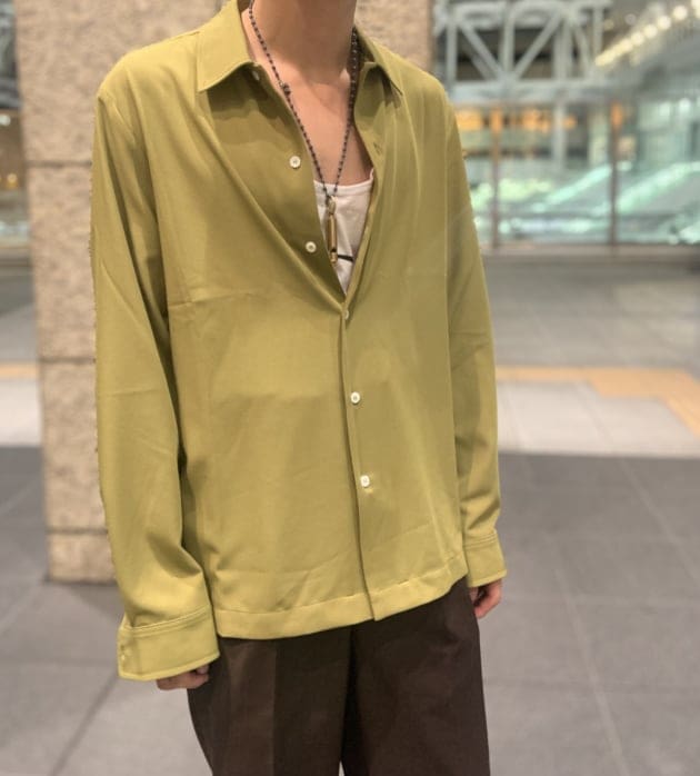 1番最初にご紹介したピンクのシャツより、このマスタードカラーとピスタチオカラーのシャツの方が生地感がよりテロっとソフトな仕上がり。