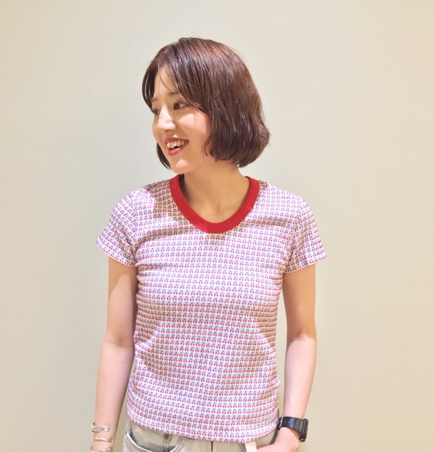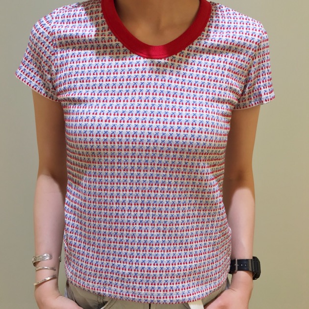 小さなチェリー柄がほどこされたこちらのTシャツ。