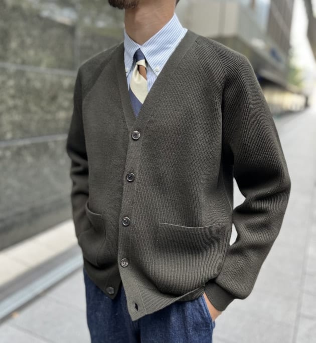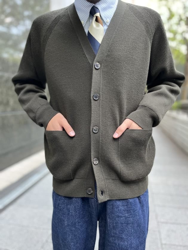こちらもカーディガン同様リブを付けたクラシックなスタイルを別注でリリース。