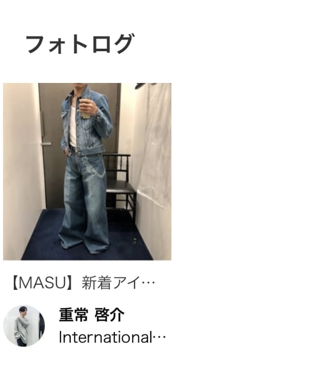 それがこちら。《MASU》のらしさ全開なデニムセットアップ。