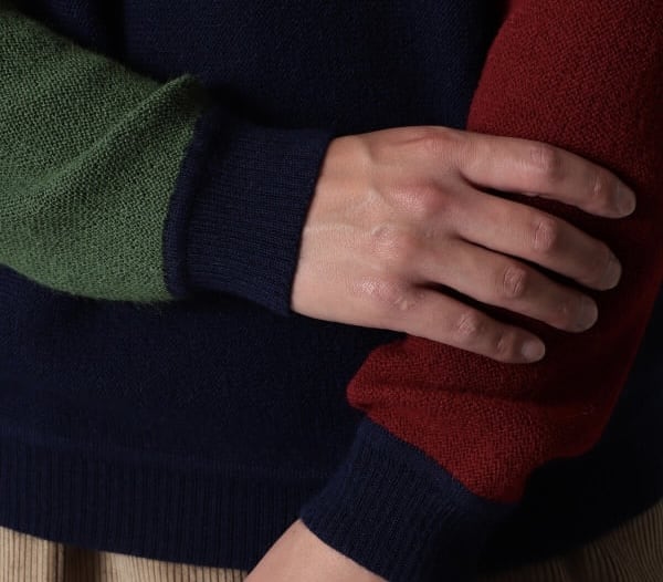 こちらのマルチカラーニットは当レーベルで展開しているモノ。