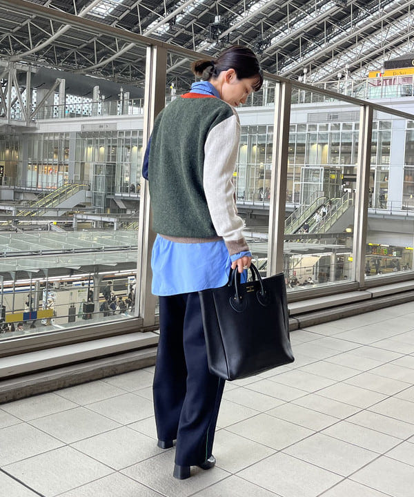 中本はDemi-Luxe BEAMSの女性的な洋服から、International Gallery BEAMS、Ray BEAMSなどレーベルの枠を超えて時にはボーイッシュに、時にはガーリーに、時にはドレッシーに、マルチに着こなしていてそれを見ているとこちらも楽しくなってきます。