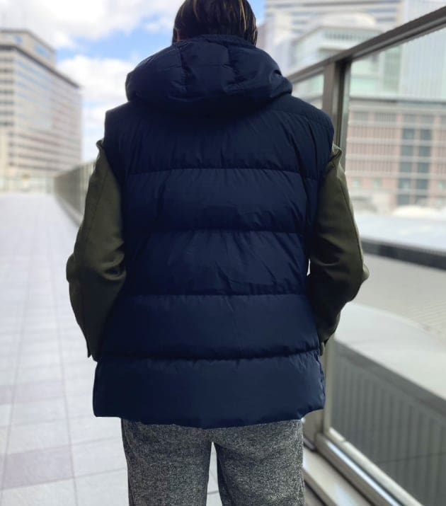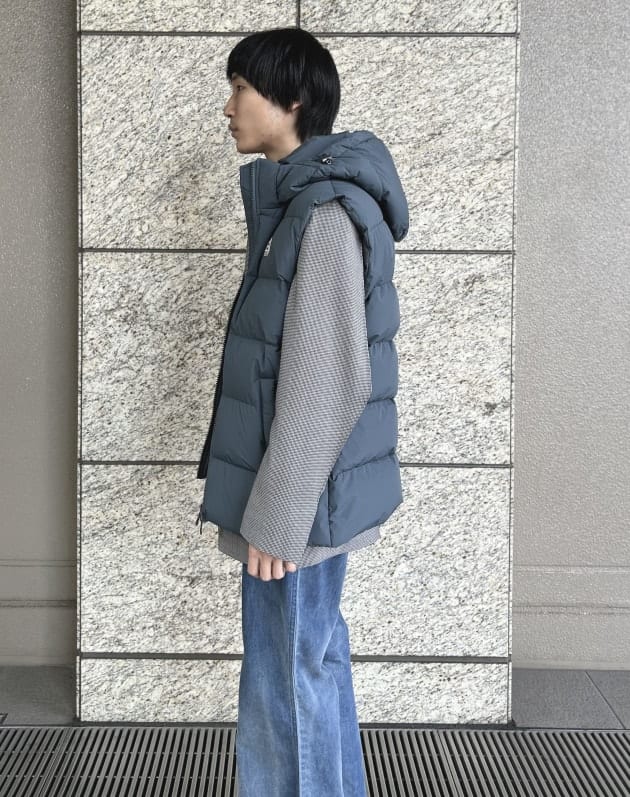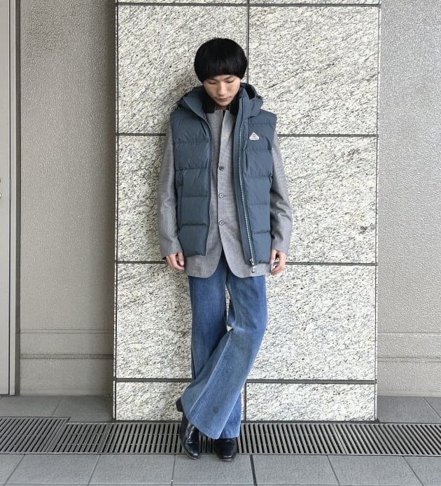 割と、何にでもラフな感じでサラッと羽織って頂けるのがこういうダウンベストの万能さ。