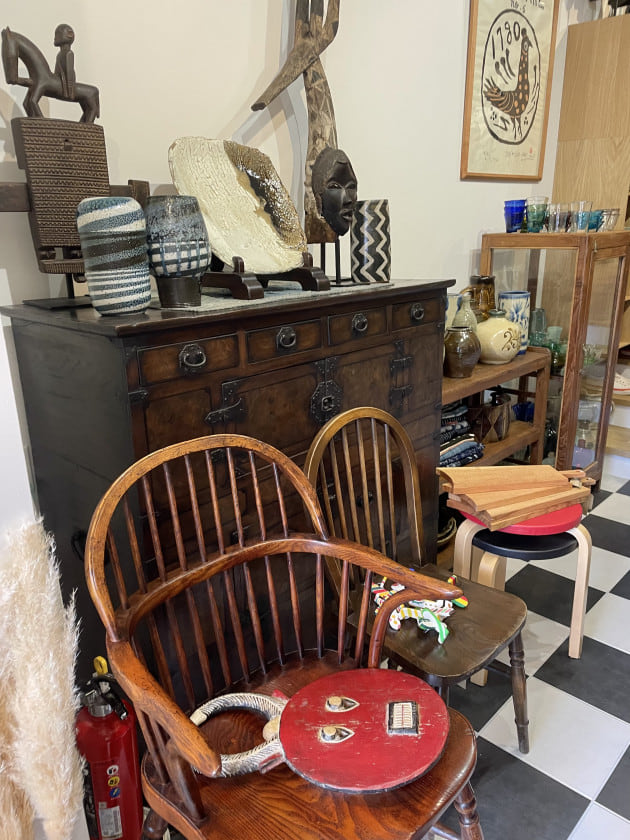 お二人の目でセレクトした北欧をはじめとしたビンテージや民藝品の数々。