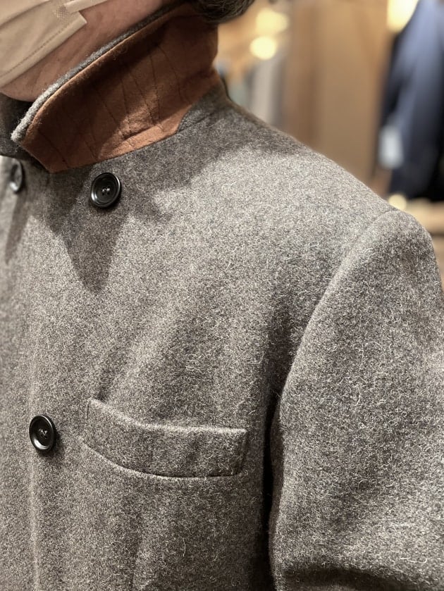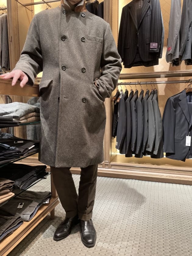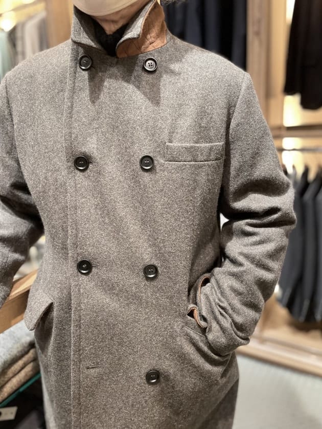 今シーズンお求めのM様お気に入りの〈l'impremeabile(リンペルメアビレ)〉のローデンクロスコートでご来店。新ディレクターによりコレクションが一新されたブランド。