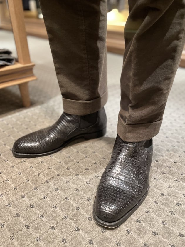 そして足元のチョイスが番長M様らしい。リアルリザードのサイドゴアブーツ。M様らしい大人のカジュアルに参りました。