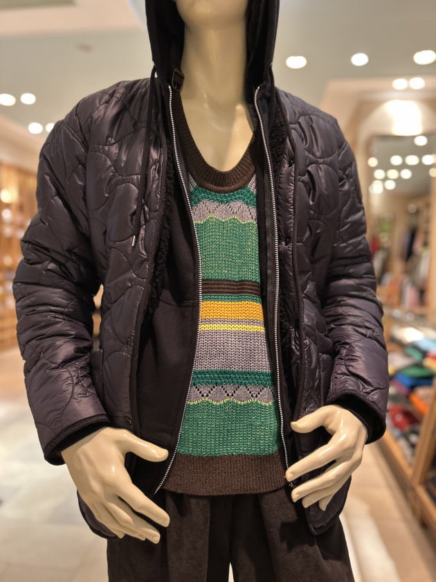 ナイロンキルティングだとハードな感じ、フリースだと少し甘い感じ。そんな2面性を孕んだ一着が素敵。