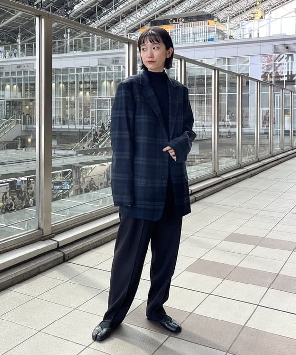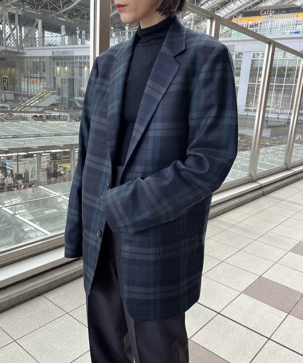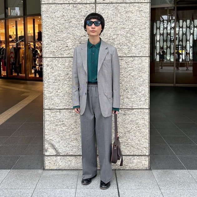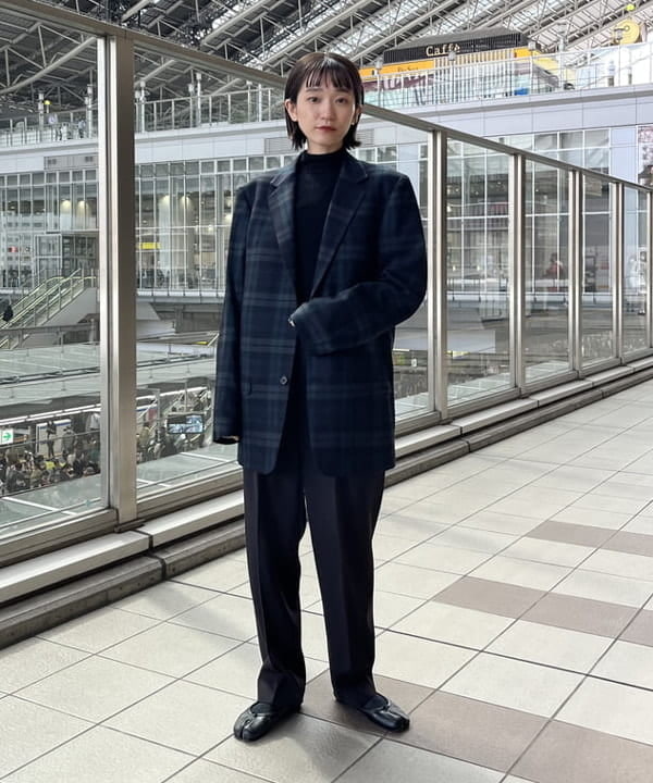 大きめのジャケットは我らがInternational Gallery BEAMSと日本が世界に誇るCLASSのデザイナー堀切氏のブランド《TOO SOON TO KNOW》のモノ。(スーツの組み上を着用 Size46)
