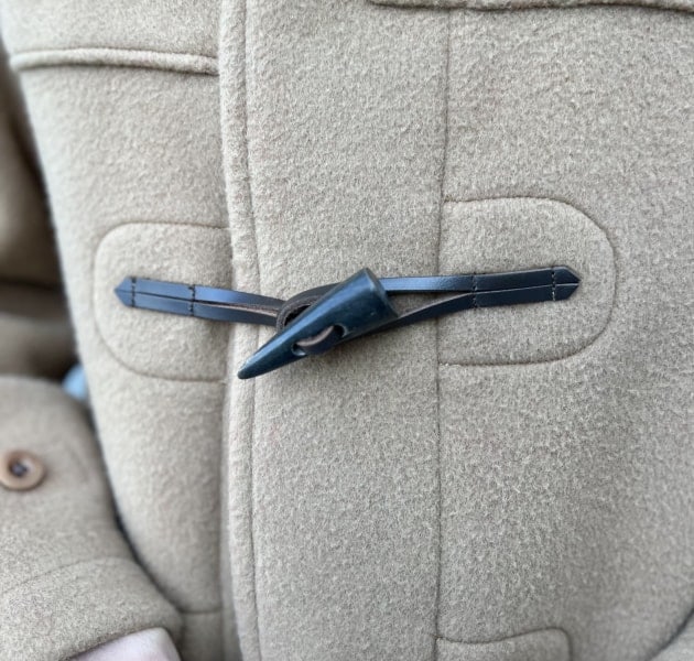 ダッフルの1番の特徴ともいえるのが、このレザーとホーントグルを使用している点ですよね。