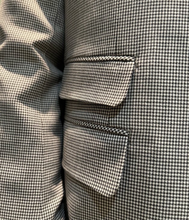 白黒ハウンドトゥースにチェンジポケットが親父の背広みたいな一着。