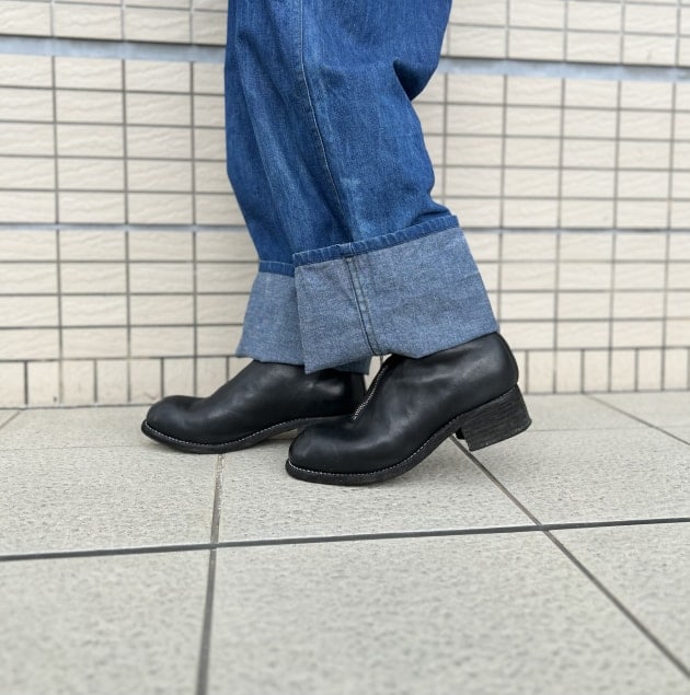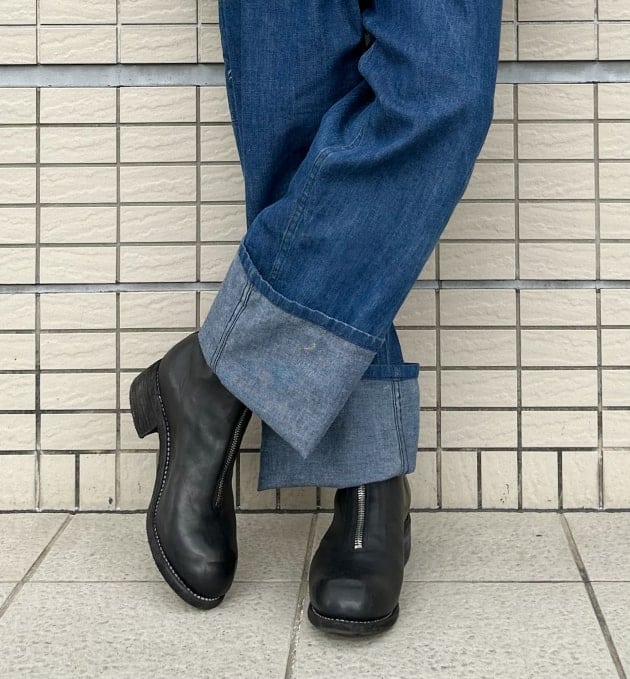 ブーツに合わせて裾を少し多めにターンナップしているのも気分な感じです。
