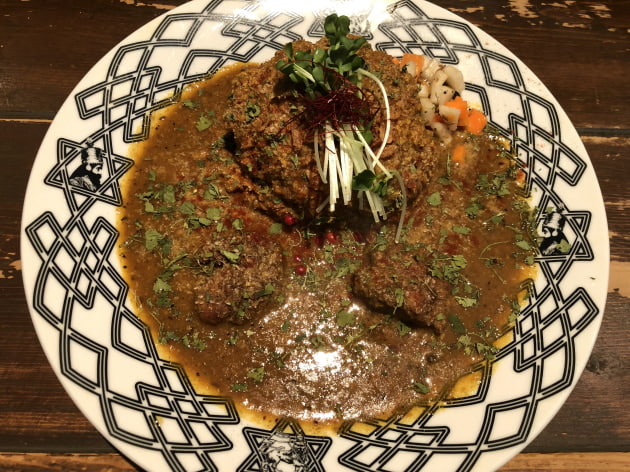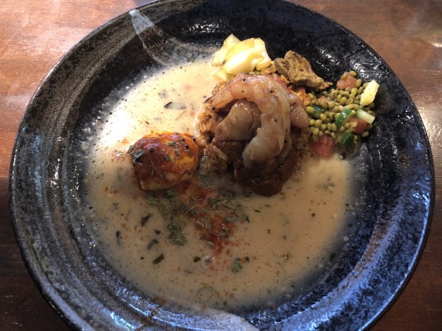 メニューからも、そしてカレーのビジュアルからもお察しの通り中々一筋縄ではいかないカレー。