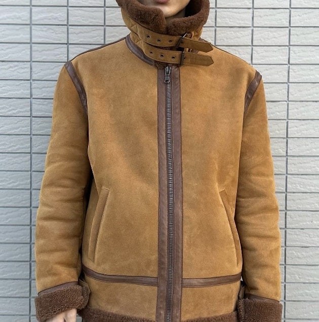 でもさ、このB-3これだけ薄着の上に羽織っても十分暖かいんだぜ。風は通さないし襟を立てて前を締めれば雪の日でも対応できるんだよ。こんな風にね。なんせムートンだからな。