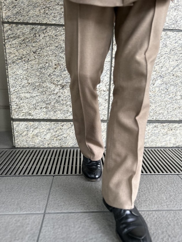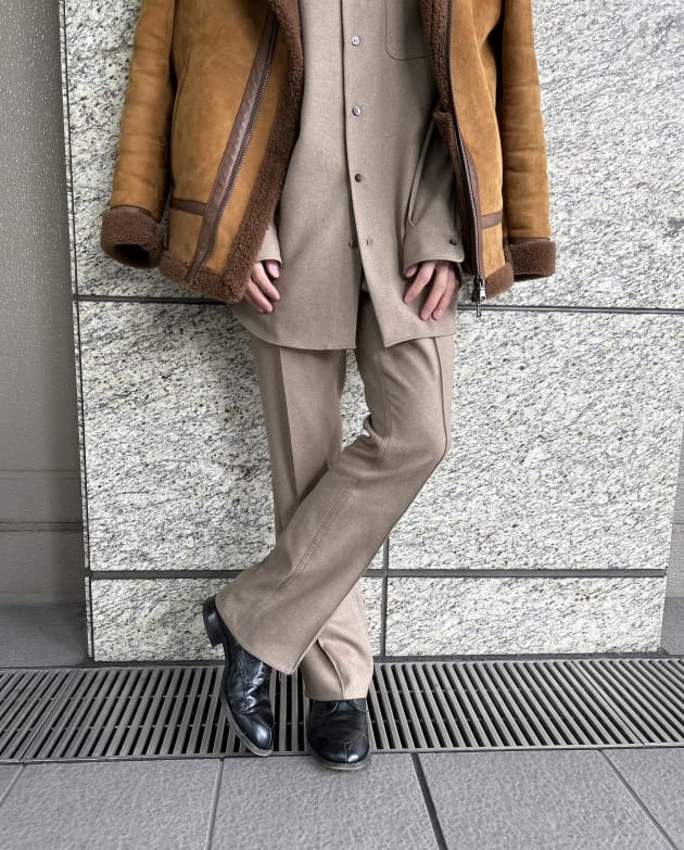 まるでウールみたいな表情のこのセットアップはちょっと気合を入れてファッションをしたい日には勿論のこと、今日みたいな気の抜けた休日の散歩にも使えてしまう。