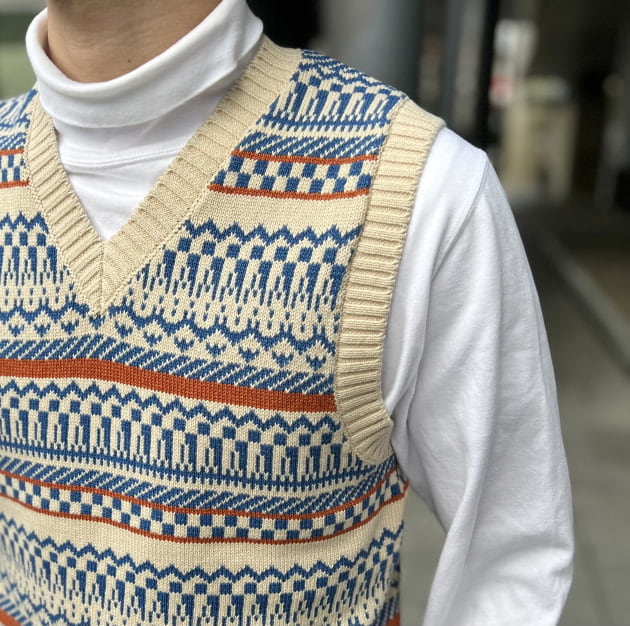 私もこの手のニットベストを所有していますがスタイリングもしやすいので大変重宝しています。