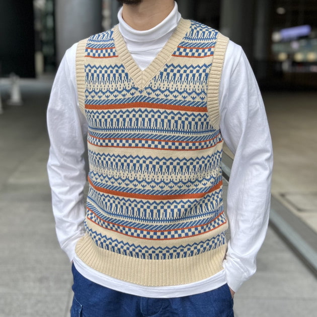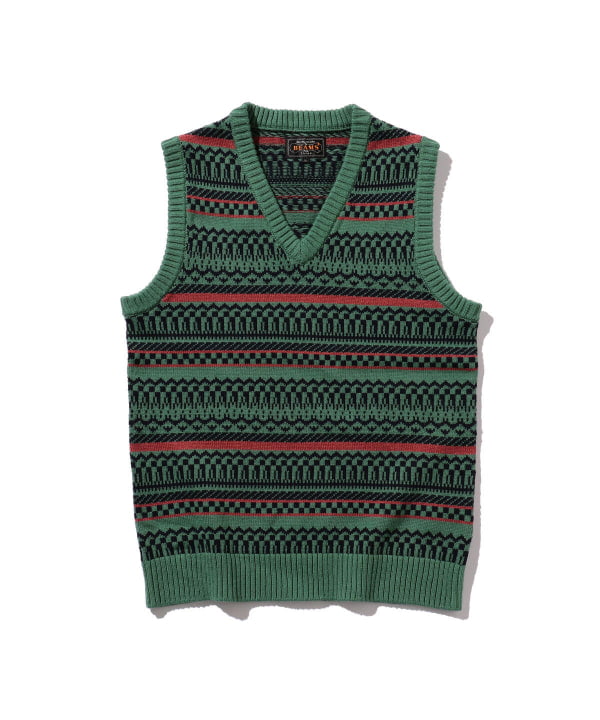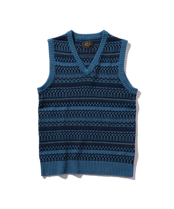 BEAMS PLUS / インディゴ ジャカード ニットベスト