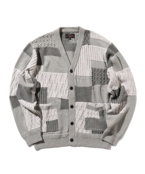 BEAMS PLUS / 5ゲージ コットン パッチワークライク ジャカード カーディガン