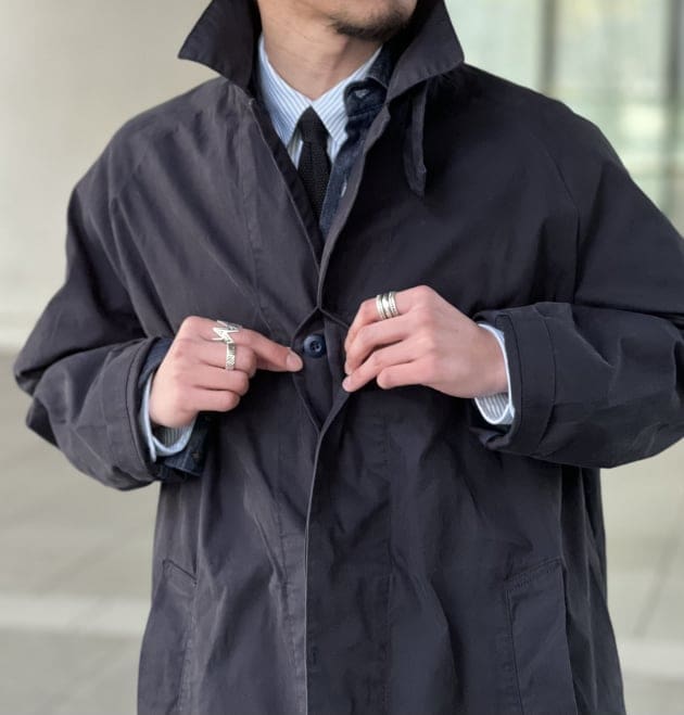 ディテールに関してはクラシックなステンカラーコートのディテールを踏襲しています。