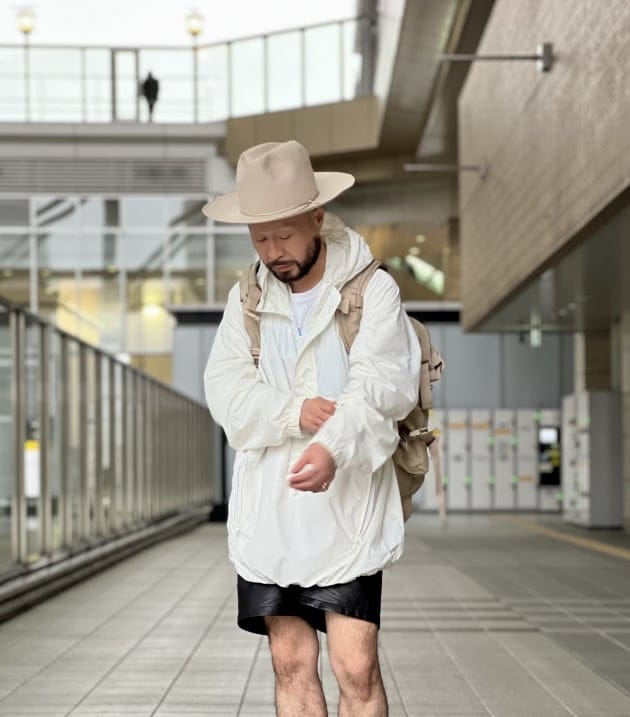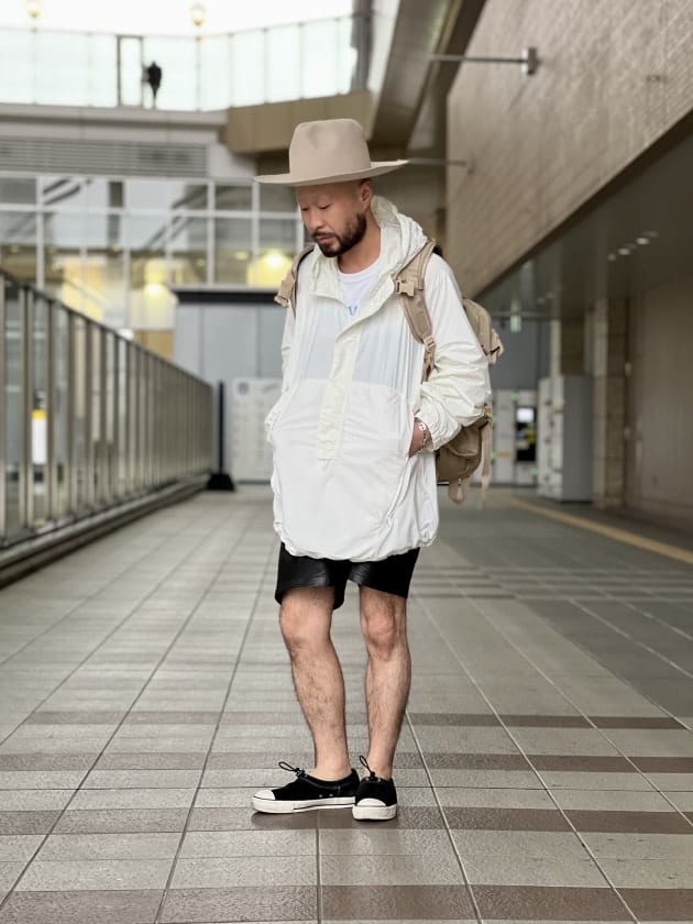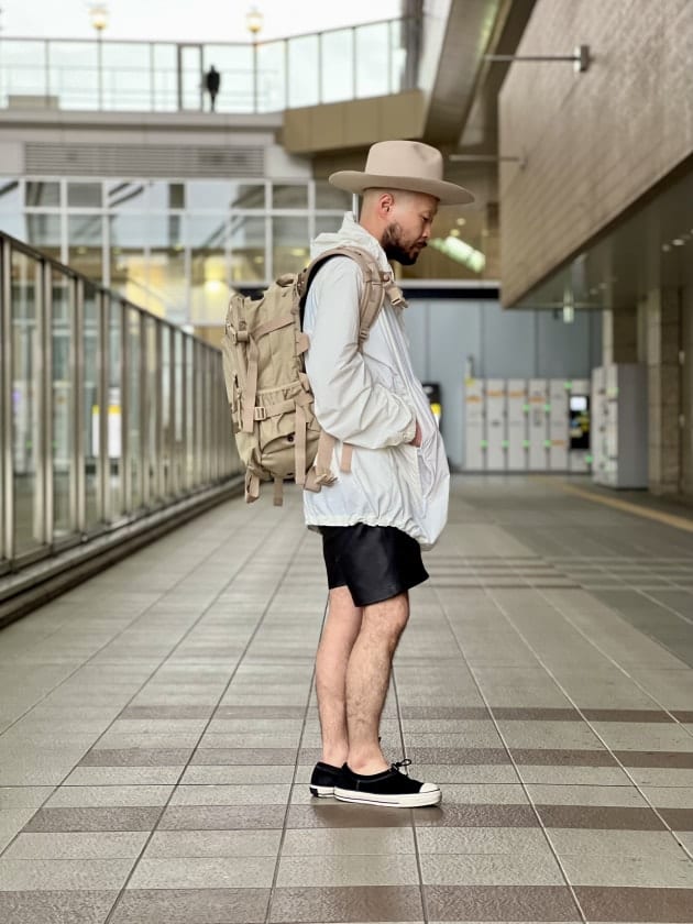 スノーパーカーを彷彿させるようなアノラックパーカー×グレゴリーバックパック(スペシャルなアイテムです)の組み合わせが秀逸。