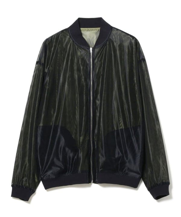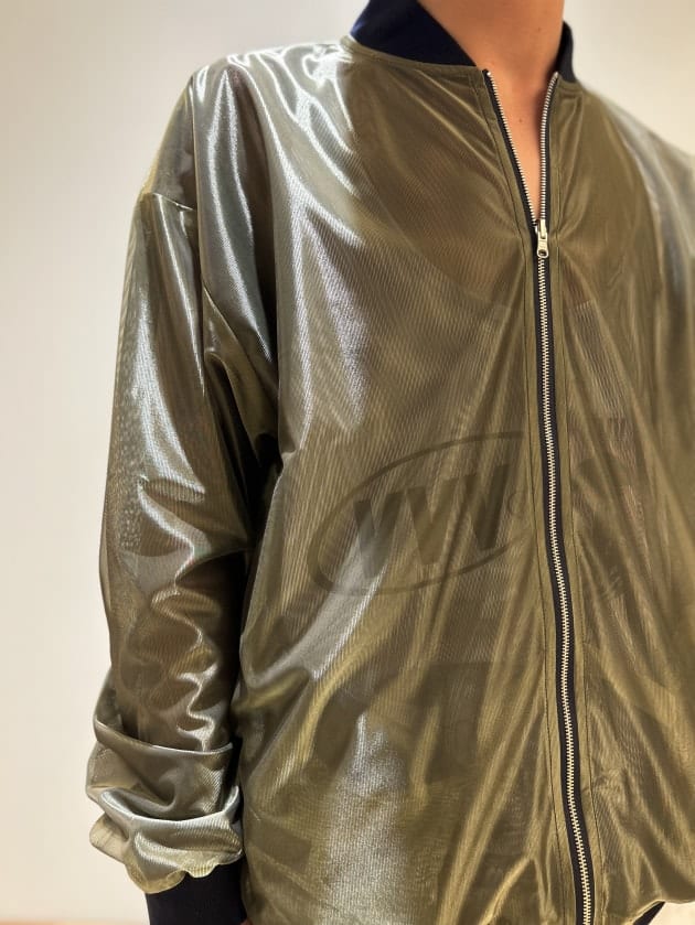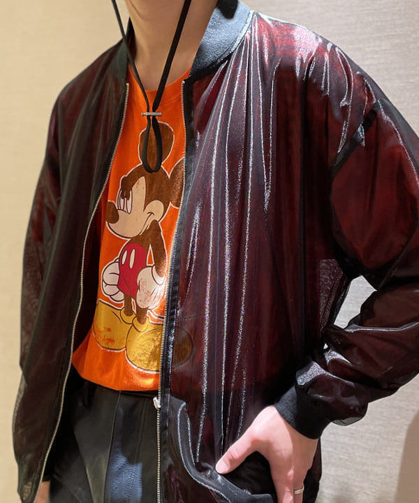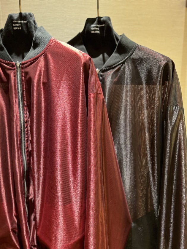 スタッフ菅原が着用するのは、シアーな透け感のあるMA-1。