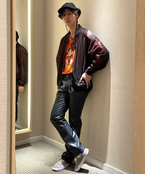 玉虫みたいな光沢がなんとも煌びやかでなんとなくテッズみたいなムードのこちらは古着のチープなTシャツとも相性良いですね。