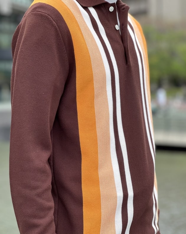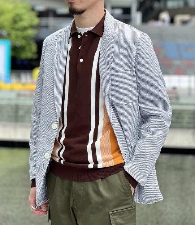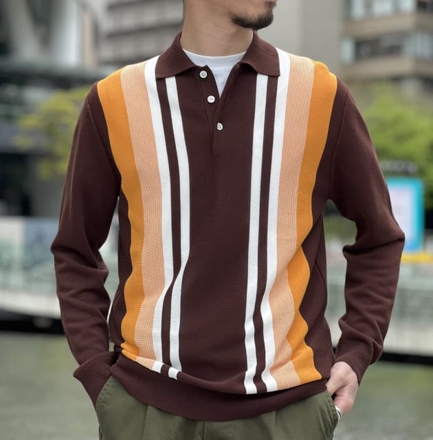 今回ご紹介するポロシャツはランダムピッチのストライプ柄を配しています。