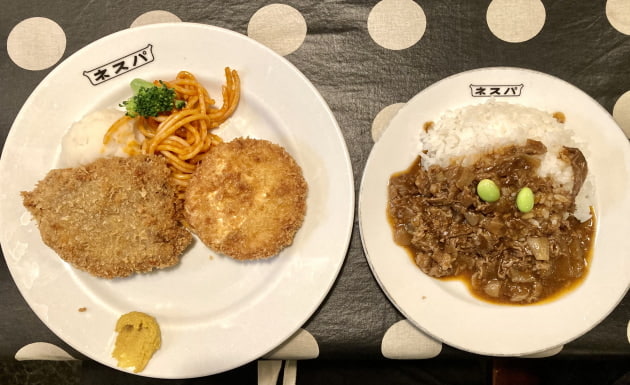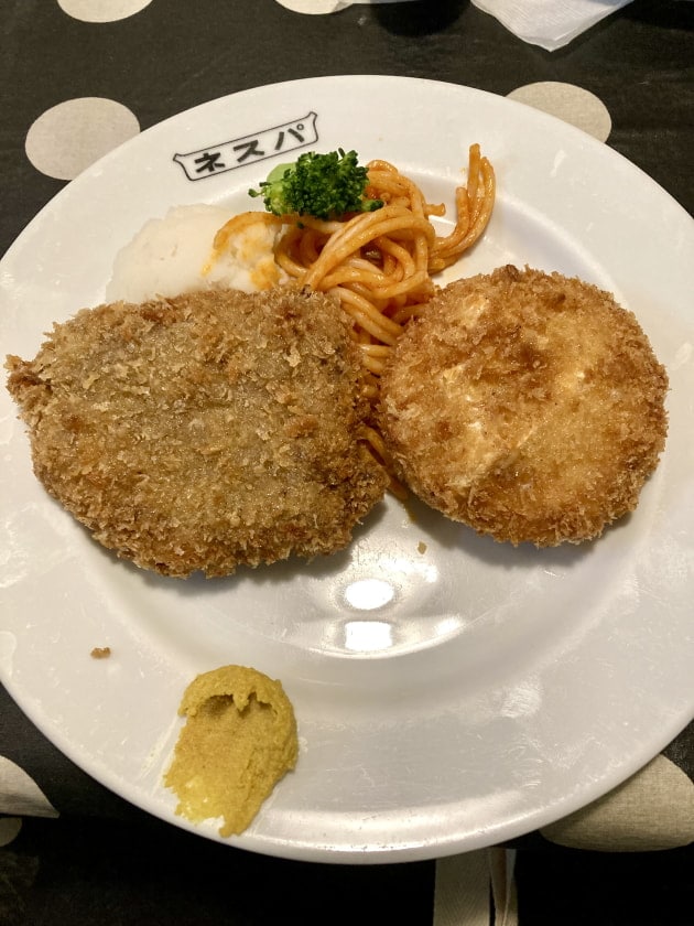 牛とカマンベールのコロペット、ハヤシライスをハーフで注文。