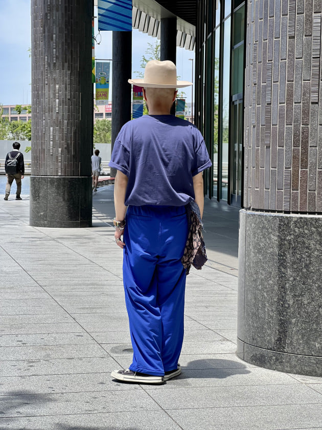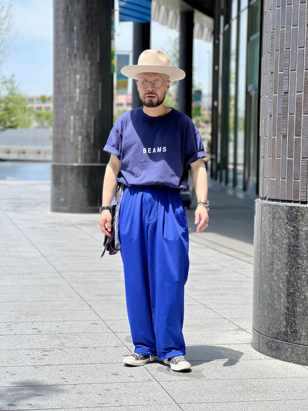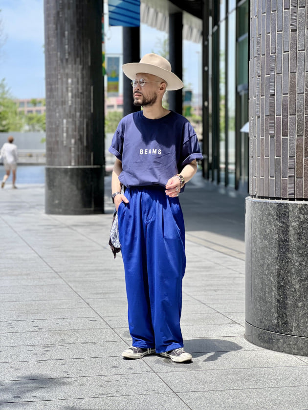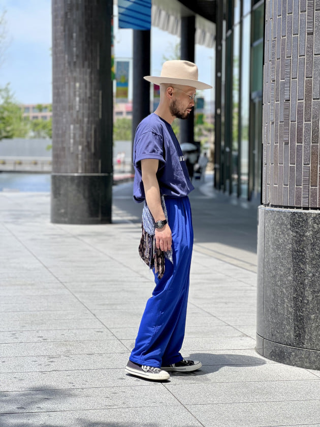 シンプルにTシャツが際立つようトップス&パンツのベースカラーを揃え、ロゴが映えるよう組み立てます。