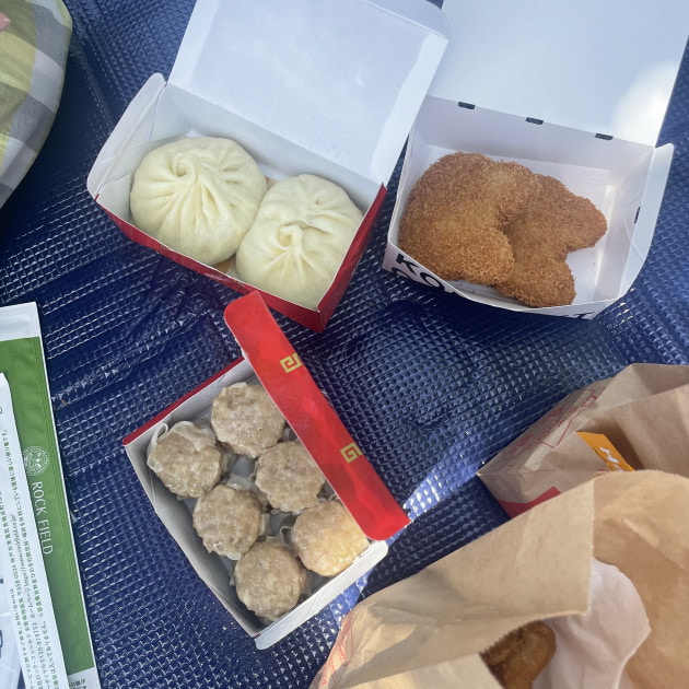 レジャーシートをなおそうと悪戦苦闘する私です。(まず荷物を置いて欲しい)