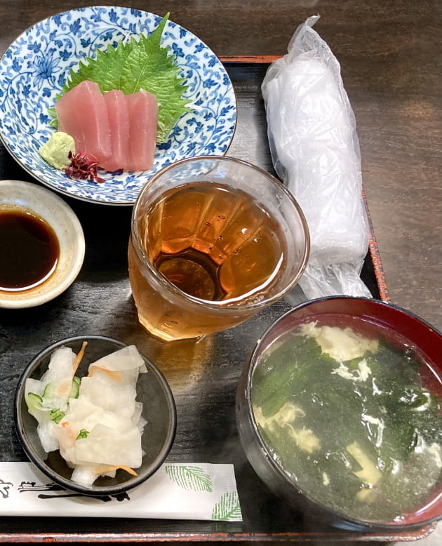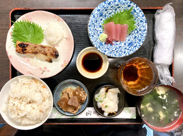 焼き魚(日替わり)と刺身 または おでんのどちらかを選んで頂けます♪