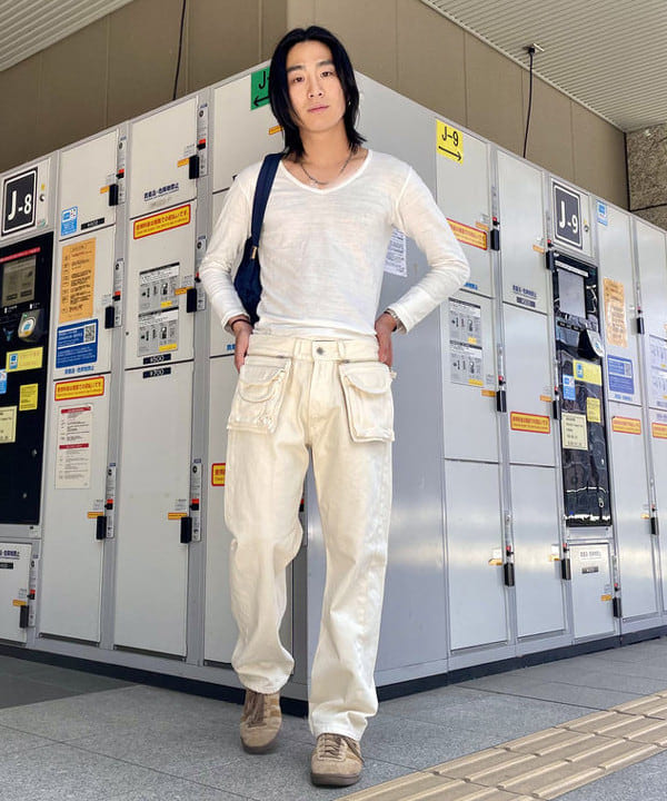 ホワイトデニムにはスタッフ浅田みたいに潔くトップスもホワイトのモノにしてコーディネートするのがこの夏の気分。