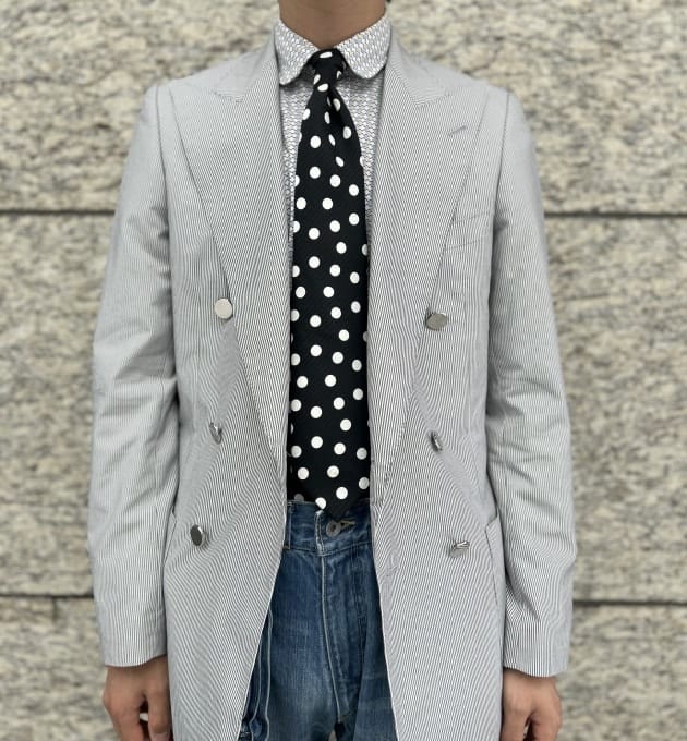 ブランド定番のブレザーを見て、お父様はタイドアップやニットポロと合わせたいと仰られたし、息子様は古着のバンTやタンクトップと合わせたいと仰られました。
