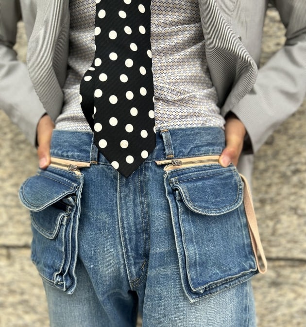 腰にマルチポケットが付けられたこちらのブルージーンズ。